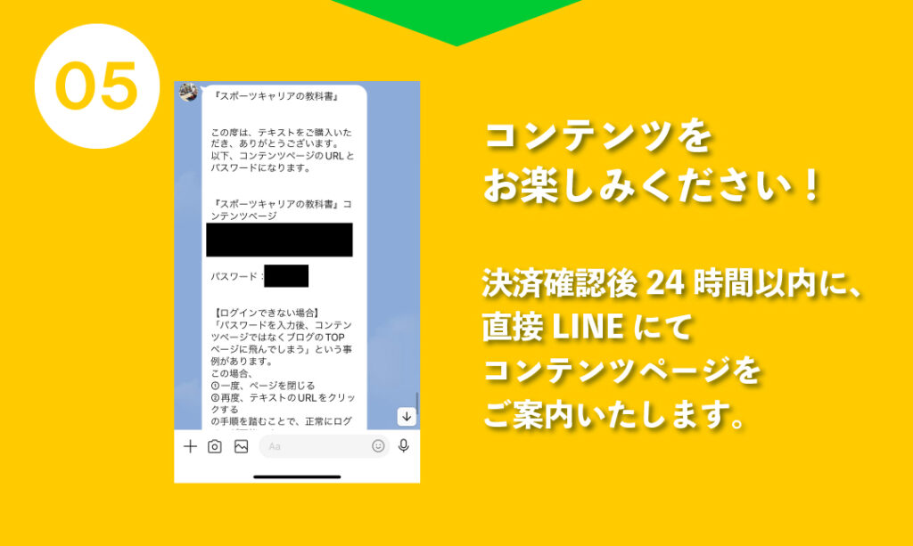 ご購入を希望の方は、下記ボタンより「スポーツキャリアの教科書」の公式LINEにご登録し、アナウンスに沿って購入ください。