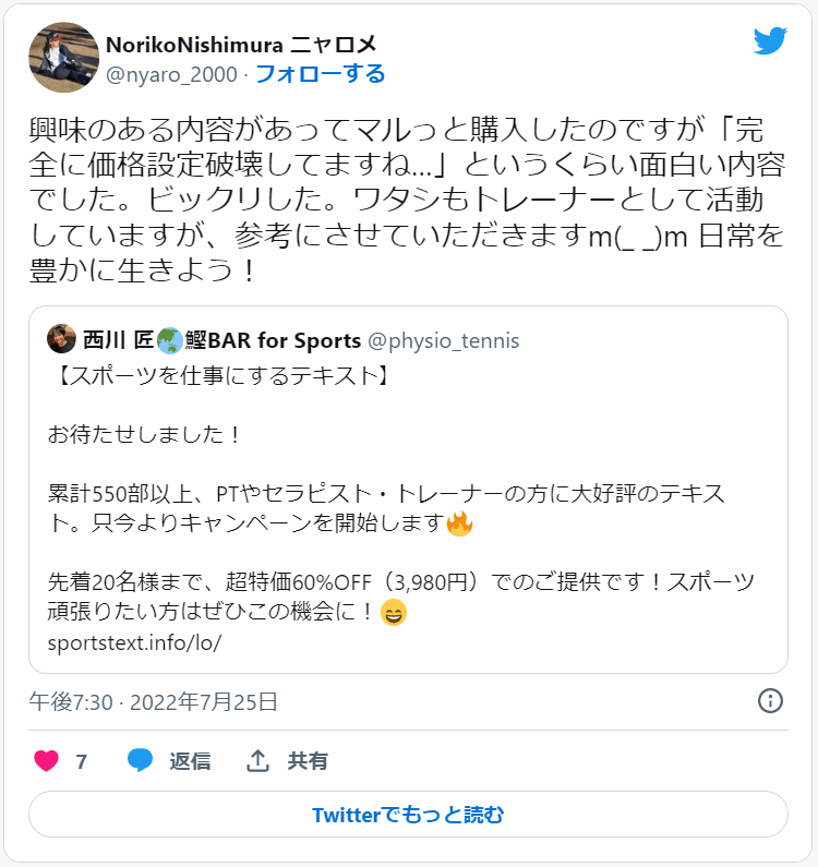正直、今まで西川自身がやってきた経験や実績・かけてきた労力とお金を加味すると、適切価格は最低でも10万円以上だと考えています。