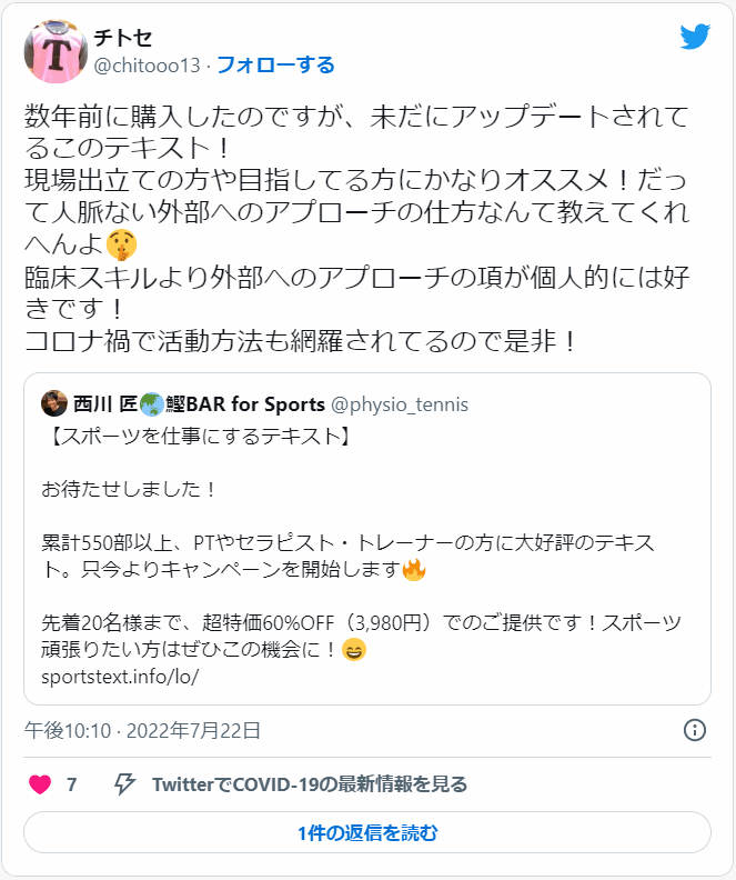 西川はもう10年近く前、私自身も理学療法士として回復期病院の勤務をしながらトレーナーの外部活動でキャリアを積み重ねていき、