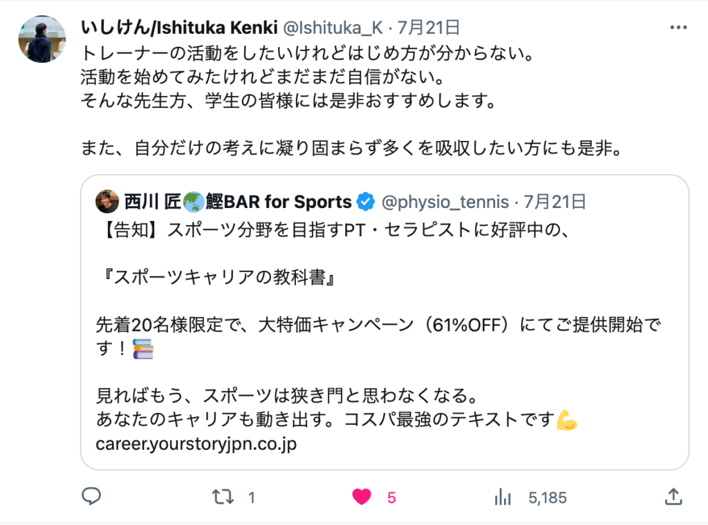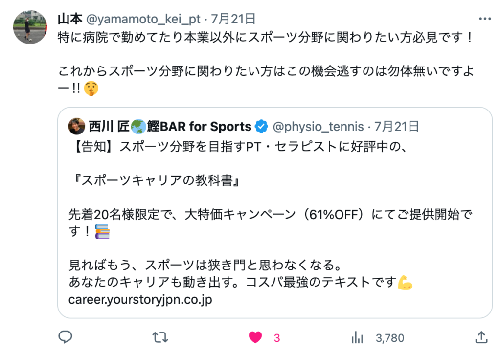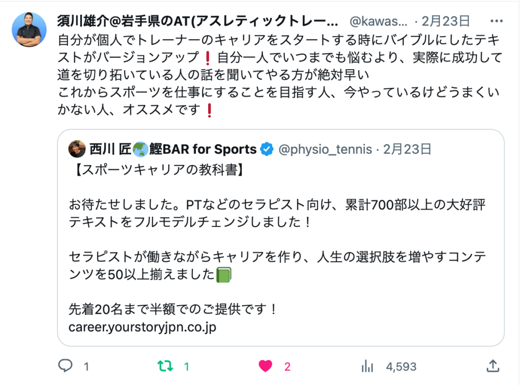 「スポーツキャリアの教科書」では、これらの経験を元に、セラピストが職場の外でスポーツのキャリアをどのように作っていくか、またそのために必要な知識や考え方をお伝えしています。